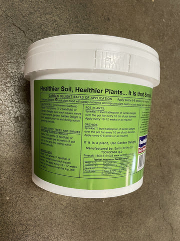 Garden Delight is 100% natural. It is a humate based plant food and conditioner. Garden Delight gives a soil texture and composition that encourages earthworm activity and micro-organism development, enhancing plant growth. This increased activity enables more moisture and nutrients to become available, allowing for optimal healthy growth for your plants. Garden Delight contains no animal waste products. Safe for use in playgrounds and parks. Garden Delight is very environmentally friendly and also Vegan friendly. It is suitable for all plants including Australian Natives.