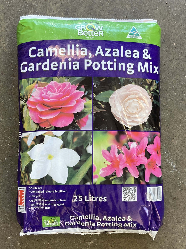 Grow Better Camellia, Azalea & Gardenia Potting Mix is an excellent blend for all acid loving plants. It contains a low pH base to ensure that iron is made available for plant health and growth. It also contains a controlled release fertilizer and Rapid Soak wetting agent for better moisture holding capacity.