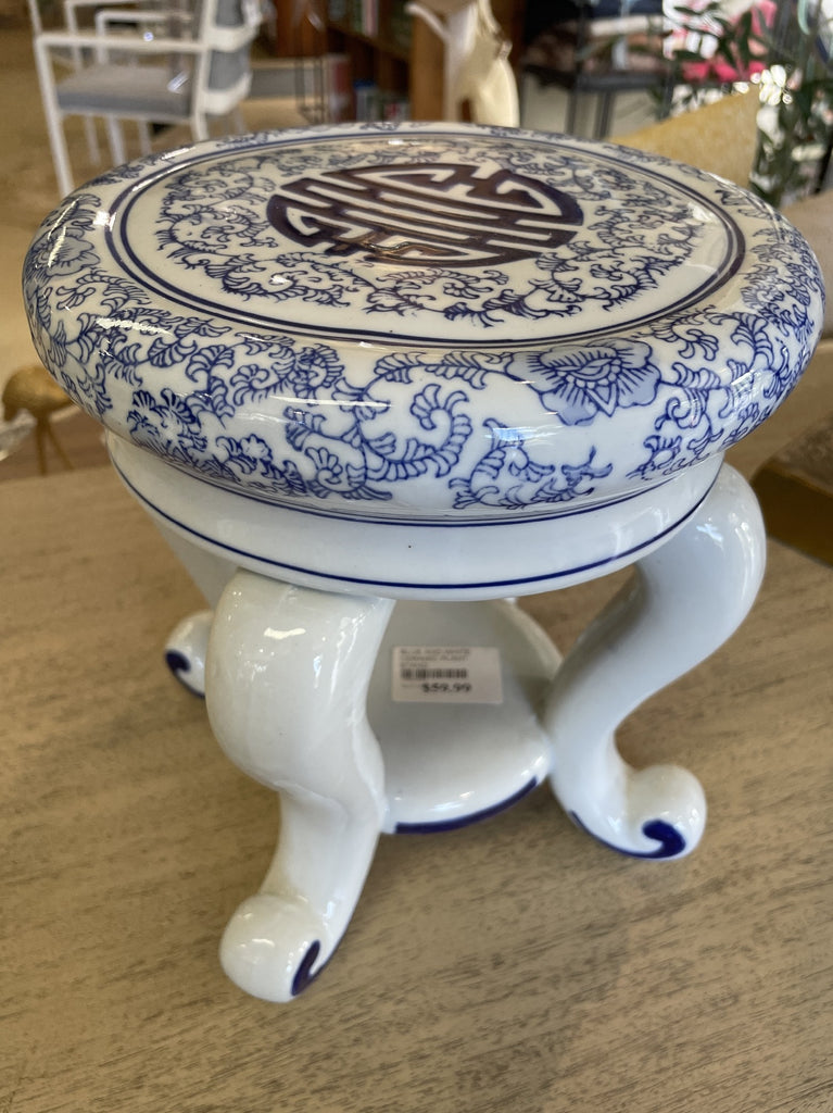 BLUE AND WHITE CERAMIC PLANT STAND